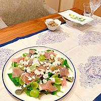 カッテージチーズのほのかな酸味と生ハムの塩味とマスカットの甘味、全ての味のバランスが整い、とても上品で美味しいサラダです👍