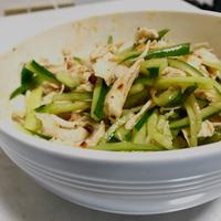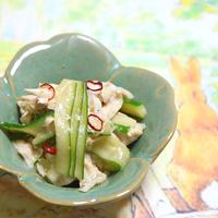 レンチンでお手軽!ピリ辛!蒸し鶏とキュウリの中華ゴマ和え レシピ・作り方
