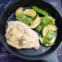 キャンプで作りました♪野菜は実家産のズッキーニとモロッコインゲンを添えました。お肉も柔らかくとても美味しく息子からも大好評☆おウチでもリピします😊✨