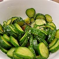 - 1 きゅうりは薄切りにします。ボウルに入れて塩をふり、よく揉みこみ、5分程置いて水気を絞ります。