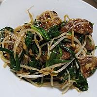- 5 フライパンを中火で熱しにんにく、生姜を炒め、香りが立ったらもやしを入れ炒め合せます。