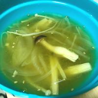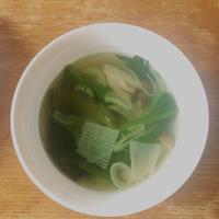 お鍋の残り物の春菊と椎茸を使ってあっさり味のスープを作りました。お出汁は昆布茶と鶏ガラスープの素で簡単調理!また、生姜で身体も温まりますよ。生姜が苦手な方は入れなくても美味しくいただけますので是非お試しくださいね。