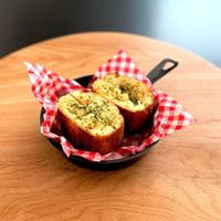 シンプルなガーリックバゲットのご紹介です。みじん切りにしたニンニクを使用して、風味豊かに仕上げています。厚めに切ったバゲットに十字に切り込みを入れることで、パンのふんわりとした食感と中まで染み込んだ味が同時にいただけます。ステーキのお供やお酒のおつまみにもおすすめです。