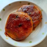 かぼちゃで作った、かぼちゃ餅のご紹介です。甘いかぼちゃに甘辛いソースがよく合いますよ。おかずにはもちろん、おやつ感覚でもお召し上がりいただけます。タレと絡めずにそのままでもおいしいので、ぜひ作ってみてくださいね。