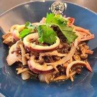 レシピの材料にイカとしめじをたっぷり追加。旨かったー⤴️ パスタにしても良さそう。