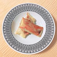 - 4 春巻きの皮で包み、水溶き薄力粉で留めます。