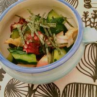 たこ きゅうり わさび醤油の相性は 最高ですね!和風だしを入れることで 更に旨みも増しています。