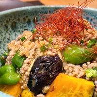 いろいろな食材に良く合う肉そぼろあん。今回は素揚げしたなす、しいたけ、ピーマンにたっぷりとかけました。ご飯やお酒がすすむひと品です!肉そぼろあんはほかの野菜にも豆腐にも合わせやすいので、ぜひご活用ください。