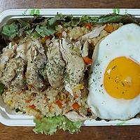 玄米2合、鶏もも肉は2枚にしました。玄米なので芯がなくなるまで弱火で30分くらいでした。その為焦げ付かないように煮汁の量も少し多めにしました。目玉焼きをトッピングしてお弁当にしました。とても美味しくできました。
