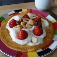 豆乳ホイップクリームを乗せて巻かないクレープにしました♪