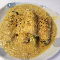 豆苗の豚肉巻き 〜カレーチーズクリーム煮〜 レシピ・作り方
