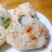 ミョウガの爽やかな香りと食感を存分に楽しめるおにぎりです。梅と鰹節の組み合わせが香ばしさをアップさせ、めんつゆを加えることでご飯にもしっかりと味が馴染みます。大葉やごま油を加えるアレンジも好評で、さっぱりとした味わいは夏にぴったり。ミョウガは多めでもOKで、お弁当はもちろん、残ったら冷たい麦茶でお茶漬けにしても美味しく召し上がれます。