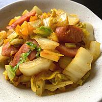白菜とウインナーのカレー炒め レシピ・作り方