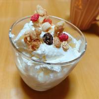 ナッツをトッピングして食べました。とてもサッパリしていておいしいです。ただ安い生クリームだからか、生クリームの主張強いです。