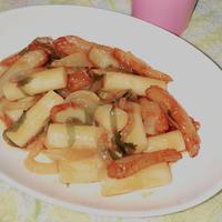 - 4 中火のまま1を入れてサッと炒めたら、(A)とトッポギ用餅を入れ5分程煮込みます。