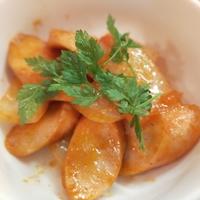 魚肉ソーセージと玉ねぎを炒め合わせ、ケチャップで味つけをしました。さっと手早くお作りいただけますので、何か一品欲しいときにもピッタリですよ。ぜひお試しください。