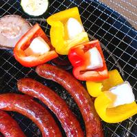 お庭でBBQついでに作りました。いつもはカマンベールCを切ってそのまま焼いてましたが、パプリカが残っていたのでチャレンジ👆🏻