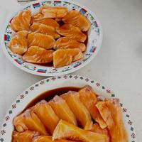 サーモンで作りました。漬け込んだサーモンを途中で裏返してじっくりつけました。おいしかったです。