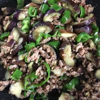 - 4 中火で熱したフライパンにサラダ油をひき、2を入れて炒めます。ナスがしんなりしたら1を加えて炒めます。