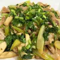 セロリ、ニラ、エリンギの野菜炒めで!めちゃ美味でした!オイスターソース系の炒めモノは絶対これにします