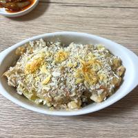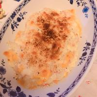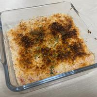 - 4 とろみが付いてきたら(A)を入れ味を調えたら耐熱皿に入れ、パン粉をかけてオーブントースターで焦げ目がつくまで10分程焼きます。