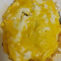 豚キムチチャーハンに卵をのせた、豚キムチオムライスのレシピのご紹介です。チャーハンにしっかりと味が付いているので、卵をのせてそのままおいしくお召し上がりいただけますよ。ランチにもおすすめです。ぜひ作ってみてくださいね。