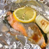 - 4 アルミホイルを敷いた天板に3の鮭をのせ、オーブントースターで10分、鮭に火が通るまで焼きます。