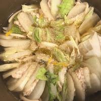 豚バラではなくロースが余ってたので1人分小さな土鍋で作りました💓柚子の香りがサイコーです(*^▽^*)👍