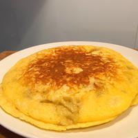 - 5 弱火で熱したフライパンに、油をひかずに4の1/4量を落とし入れます。表面がふつふつとしてきたら裏返し、弱火で2分程焼きます。中まで火が通り、焼き色がついたら火から下ろします。同様に3枚焼きます。