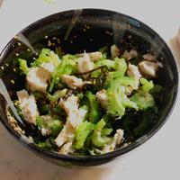 - 3 耐熱ボウルに鶏ささみを入れ料理酒を振り、ふんわりとラップをかけ、600Wの電子レンジで火が通るまで3分程加熱し、粗熱が取れたら手でほぐします。