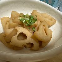 - 3 レンコンに火が通り半透明になってきたら調味料を加え、味が馴染んだら火からおろし、皿に盛り付けて小ねぎをかけたら完成です。