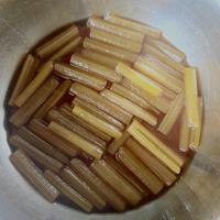 - 3 筋を取り、水を張ったバットに入れ、1時間程おいてアク抜きをします。