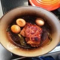 - 7 タレにとろみが付くまで強火で煮詰めます。ゆで卵と6の豚バラ肉を入れて中火で5分程煮ます。