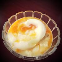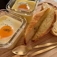 - 3 温泉卵をのせ、焼いた食パンをつけて召し上がりください。