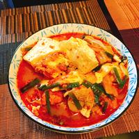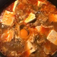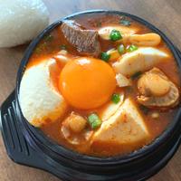 - 7 トゥッペギに移して中火で熱し、木綿豆腐をスプーンで一口大にして入れ、卵、3を加えて3分程煮たら火から下ろし、完成です。
