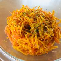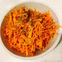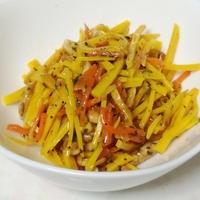 - 1 かぼちゃとにんじんを千切りにし、塩をふって揉んだら10分おきます。