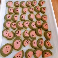 食紅(赤)の代わりにいちごパウダー、緑茶の代わりに抹茶パウダーを使用してもお作りいただけます。それぞれ5gずつ用意し、薄力粉の分量も75gずつに変更して作ってくださいね。すてきに仕上がりますように。