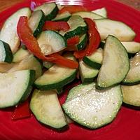 - 3 中火で熱したフライパンにサラダ油をひき、1、2を入れ、ズッキーニに火が通るまで3分程炒めます。