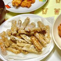いつもスーパーのお惣菜の牛蒡の唐揚げを見てて、どうしても自分で作りたくなり、クラシルさんのレシピを参考にして作ってみました。レンジで加熱して、柔らかくなったら下味をつけて、少量の油でカラッと揚げました。ちょっと片栗粉を付けすぎた感はありますが、とても香ばしくサクサクで家族にも大好評で、取り合いになったくらい大成功でした。