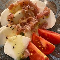 生ハムの塩気があるので、塩はほんのちょっとでもよかった。生ハムはしっかり刻むことが大事。(繋がってしまう)オリーブオイルが生ハムに対して少な目だったので、だいぶ追加した。レモン汁ももっと入れても大丈夫。バジルもいいアクセントになり、とっても美味しい☆☆☆