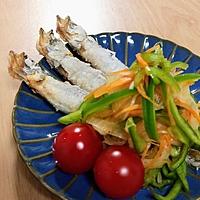 ししゃもではなくタラで代用させて頂きました。野菜類は600wで3分程レンチンして合えました。美味しかったです