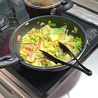 - 5 1を加えて炒め、キャベツがしんなりしたら塩こしょうで味を調えて完成です。