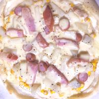 チーズはモッツァレラとラクレット、ベーコンとソーセージ切ったものを乗せました。塩味がとても良いのでおすすめです💕