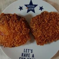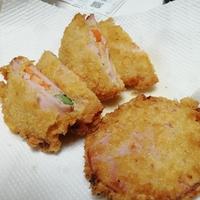 ロースハムにポテトサラダをはさんだ、ハムカツのご紹介です。ロースハムとポテトサラダの旨味が、サクサクの衣とよく合います。パンにはさんでサンドイッチにしても、おいしく頂けます。ポテトサラダが余った時など、ぜひお試しくださいね。