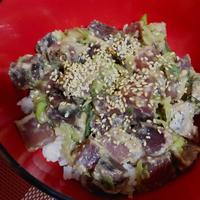 ご飯の上にのせてみました!簡単で美味しかったです♪かつおはたたきになってるものを使いました。