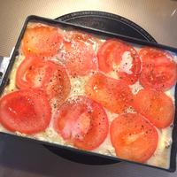 トマトを上に乗せてフライパンで調理しました☆トマトの酸味とチーズが豆腐とカレーのマイルドな味にあって美味しかったです(о´∀`о)次は同じのをトースターでやってみたいです☆