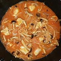 耐熱角皿が無かったのでフライパンでコトコト煮込みました☆鶏肉に塩胡椒で下味付けて火が通ったらキノコと玉ねぎ入れてささっと焼いて牛乳トマトジュースチーズコンソメで黒胡椒を多めに入れたらピリっとスパイシーで濃厚なトマトクリーム煮ができました!!味付けも最高で一瞬で完食しました☆またリピしたいと思います!!
