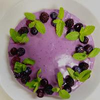 グラサージュなしで生地にブルーベリーを混ぜ、ミキサーで撹拌し冷やし固めました。ブルーベリーの量が少なかったのでもう少し多めでもよかったです。〜朝摘みブルーベリーを使って〜 😃🍴💕