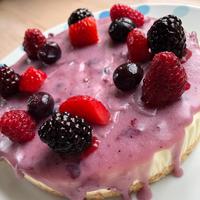 さっぱりとした口当たりが特徴的なレアチーズケーキです。ゼラチンの量を生地6g、グラサージュ2gほどに調整すると、ちょうど良い食感に仕上がります。ブラックベリーの代わりにブルーベリーでアレンジしても美味しく、チーズとベリーの風味が絶妙なバランスで調和します。クリーミーな口溶けを楽しめる人気スイーツで、作り方も簡単でダマになりにくいのが特徴です。家族にも好評な一品です。