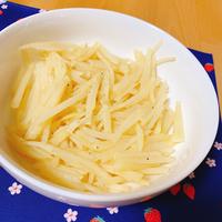 - 1 じゃがいもは細切りし、ボウルに入れ10分程水にさらしてザルに上げて水気をよく切ります。